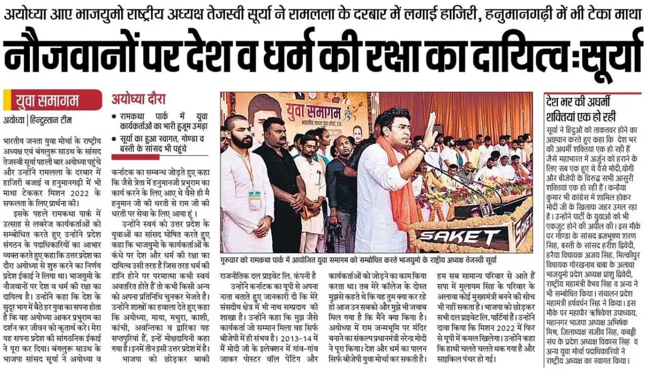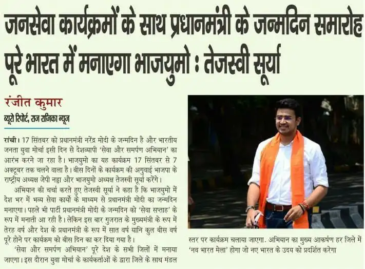 Member of Parliament (Bangalore South) in Lok Sabha, Shri Tejasvi Surya is the current President of BJYM.
